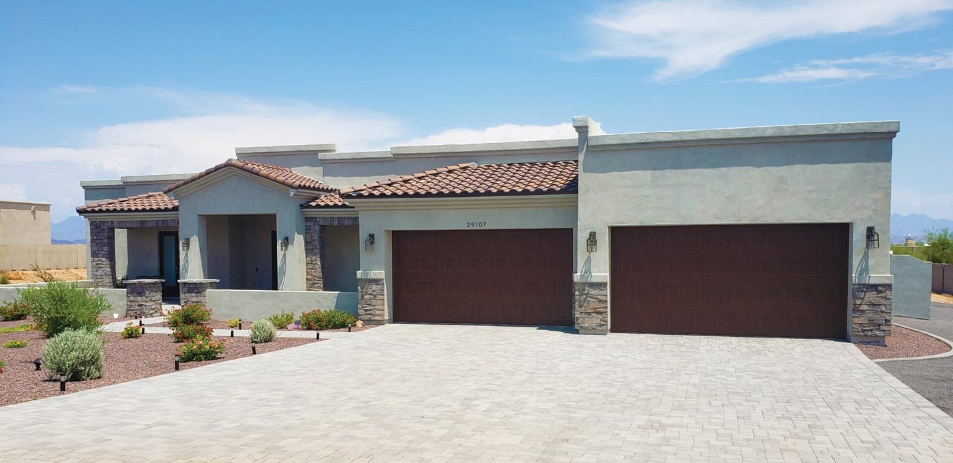 According to Chavez, one key to the quality his company delivers is the product they use: Dunn Edwards.“For the type of work we do, the paint is very predictable and dependable,” says Chavez. “That helps us keep the work moving and stick to customer schedules.” One project that recently took up a lot of time on Chavez and his six-person crew’s schedule was a big custom home project in Rio Verde, AZ. Featuring a dozen 4,000-sq.-ft. single-family homes built by AJF Custom Homes, the job entailed complete interior and exterior painting.
