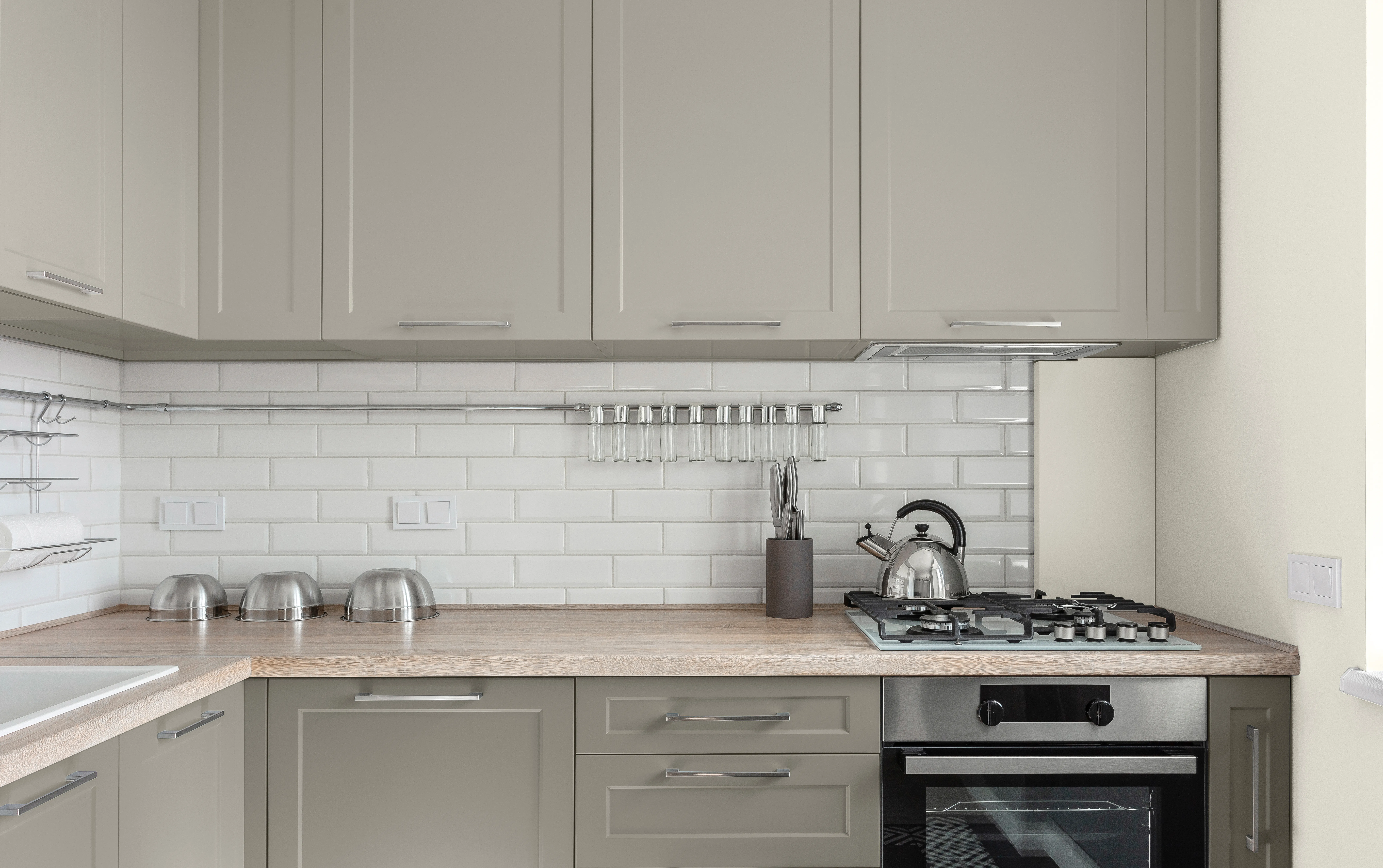 Should kitchen cabinets be lighter or darker than the walls?