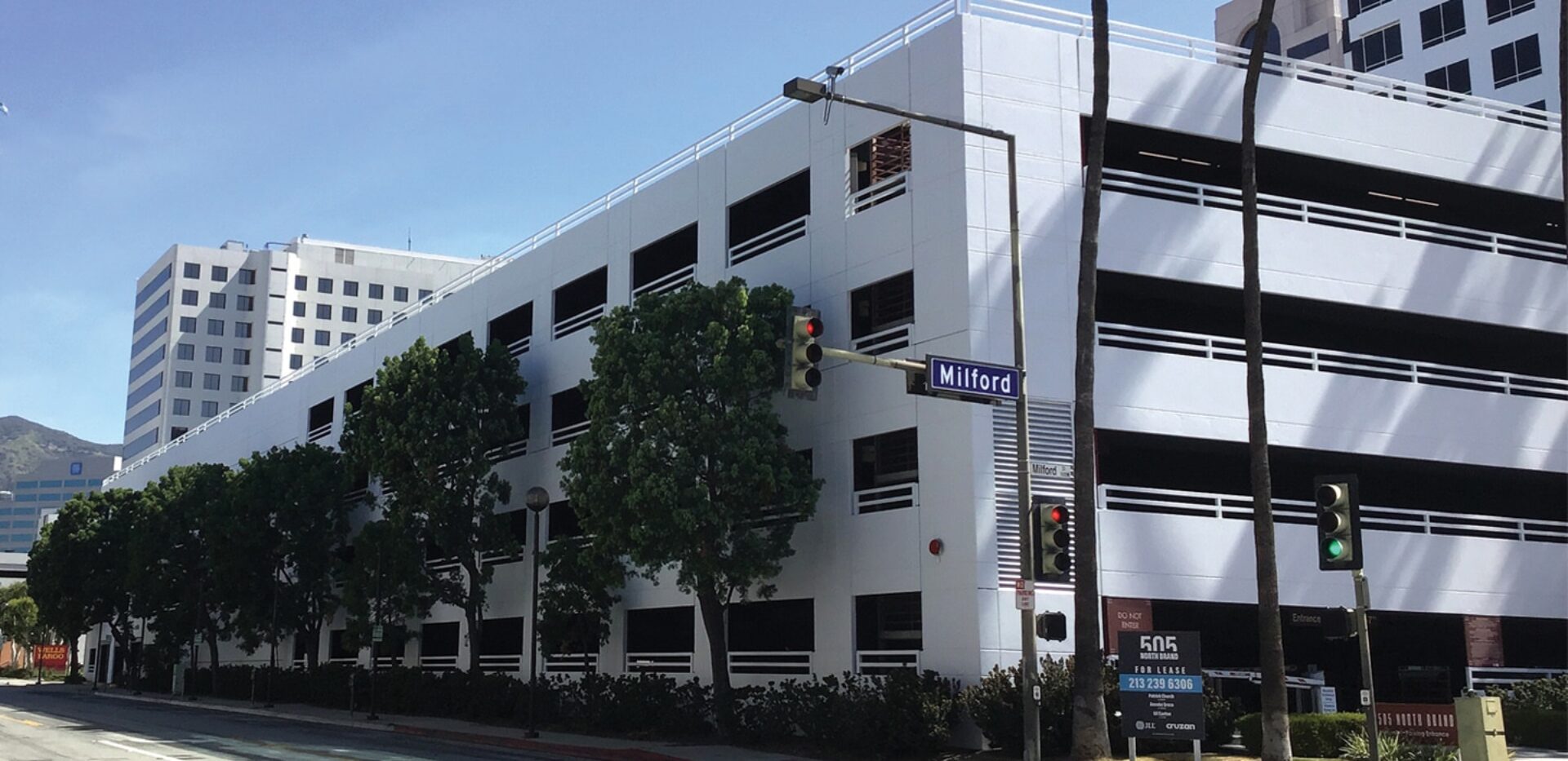 El nuevo sistema incluía la aplicación de la crema grabadora Etch-I-M de X-I-M y su correcta eliminación; a continuación, se aplicó la imprimación de albañilería/adhesión SLPR00 SUPER-LOC Premium de Dunn-Edwards, seguida de dos capas de EVSH50 EVERSHIELD de la empresa, una pintura exterior semibrillante ultrapremium 100% acrílica. El nuevo sistema funcionó tan bien que se contrató a PSI para pintar también el edificio de 18 plantas y el aparcamiento adyacente de 5 plantas. Debido a COVID-19 y a problemas meteorológicos, se tardó cinco meses en completar todo el proyecto, que supuso más de 80.000 dólares en revestimientos. Hoy, los propietarios del edificio no podrían estar más contentos con los resultados, ya que el 505 North Brand ha pasado de ser un edificio beige y soso a convertirse en una obra maestra en su barrio de Glendale.