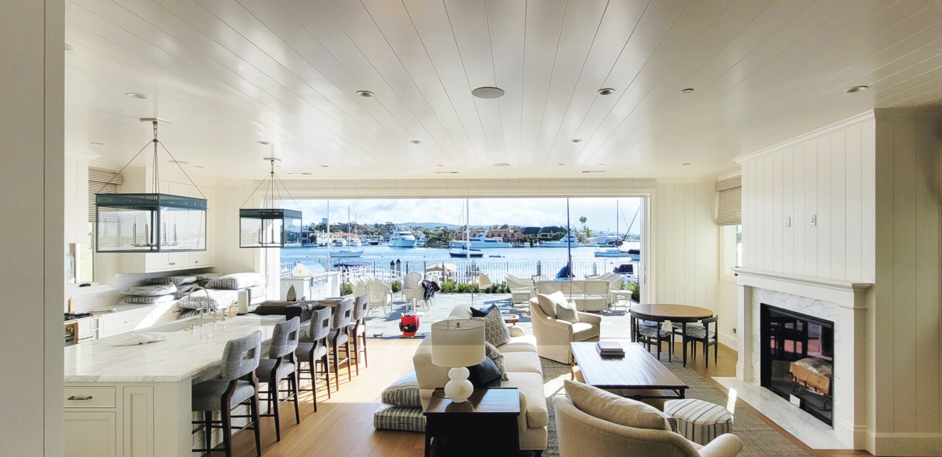Bayshores es una de las principales comunidades frente al mar en Newport Beach, con dos playas privadas con impresionantes vistas al agua. Las casas también son llamativas. Esta nueva residencia de Newport Beach, de más de 1.000 metros cuadrados, combina un interior moderno con toques de decoración clásica. Esto se consiguió en parte pintando paneles de MDF shiplap en paredes y techos en Dunn-Edwards Warm White (DEW380) en la mayor parte de la casa. Los armarios, rodapiés y molduras de roble se pintaron del mismo color; la única excepción fue el lavabo del baño, que se pintó de Caribbean Cruise (DE5760).
