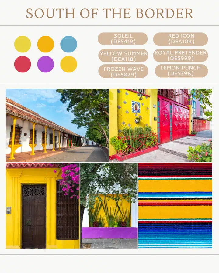 To learn more in depth about the color yellow and its influence on the American West, click here. And read on to see why we chose the following shades as our Colors of the Months over time: Lemon Gelato (DE5464), Summer Sun (DE5405), and Beach House (DE5430) . And read on to see why we chose Honey Glow (DE5354) as our 2017 Color of the Year. Need more inspiration? Read our 2024 color + design trends report for an in-depth look at all the trends we look forward to in the next year.