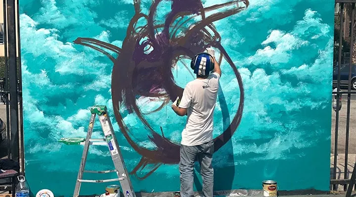 Dunn-Edwards Paints fue un orgulloso patrocinador de la pintura mural en vivo de Art Share LA en Avocado Fest. El artista de Art Share LA, Black Light King, un artista callejero de Los Ángeles, estuvo presente pintando exclusivamente con pinturas Dunn-Edwards para la activación artística. Black Light King estaba emocionado de formar parte de este evento y de poder expresar su nuevo amor por los aguacates y sus beneficios para la salud a través de su arte. El artista se ha hecho vegano recientemente, y atribuye a ello el cambio positivo en su forma de pensar, pintar y percibir la vida. Su obra en el Avocado Fest está inspirada en esos mismos cambios. The Floating Vegan (El vegano flotante), como se llama la obra, muestra el corazón del artista, como un aguacate con alas, una representación de la ligereza que siente ahora en su vida. Black Light King describe su corazón "como si ahora flotara en las nubes".