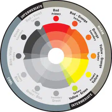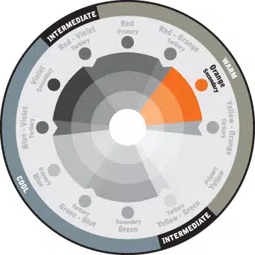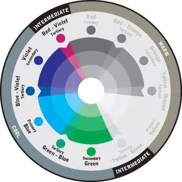 The temperature of a color – whether “warm” or “cool” – must be considered both individually and when used with other colors. Reds, oranges and yellows are considered warm colors, while blues, greens and violets are perceived as cool colors.