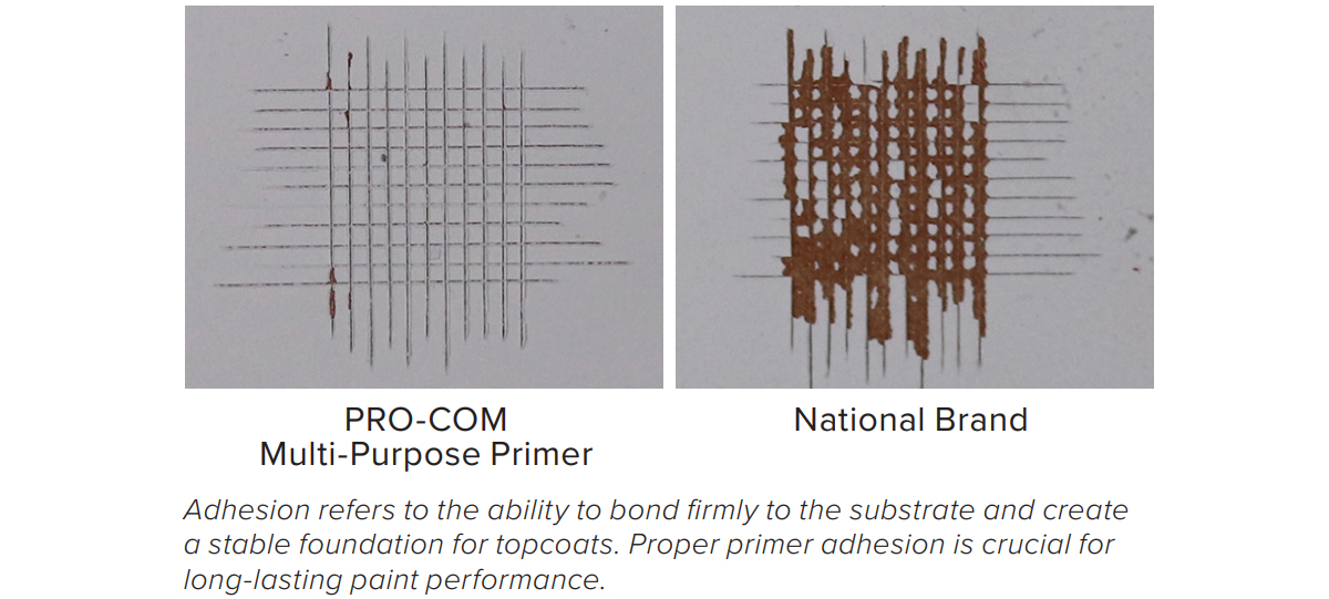 PRO-COM® Multi-Purpose Primer is an interior/exterior, ultra-low VOC, multi-surface primer, ideal for commercial and multifamily properties. It provides very good adhesion to properly prepared drywall, wood, and masonry, as well as hard-to-stick surfaces, such as aged alkyd, aluminum, and galvanized metal.