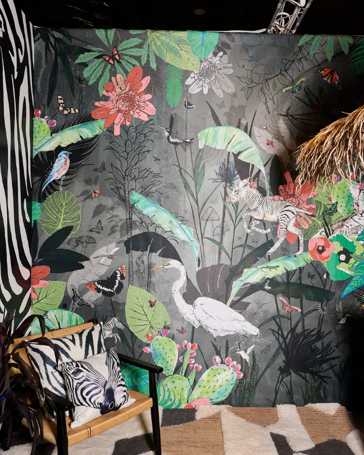 Jardim Tropical Courtyard reflects peace and tranquility—emotions that evoke calmness and contentment. I wanted to capture the feeling of being fully present, while transporting you to a place of nature that grounds you. My work carries humor and joy, and every detail is made with love.