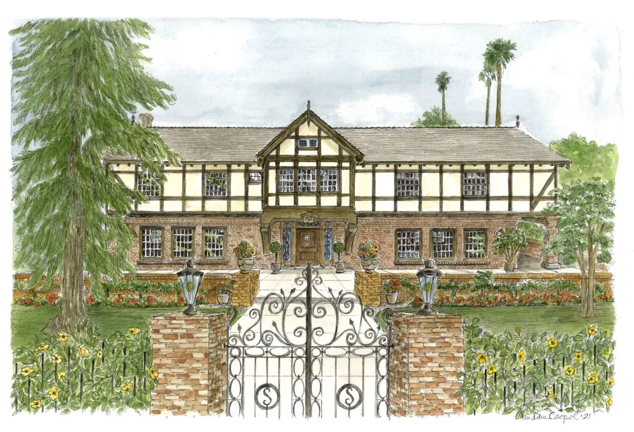 Set among a historic Greene & Greene planned neighborhood within the city of South Pasadena, this 1905 English Tudor mansion is a sprawling estate set among artistically landscaped gardens with scenic