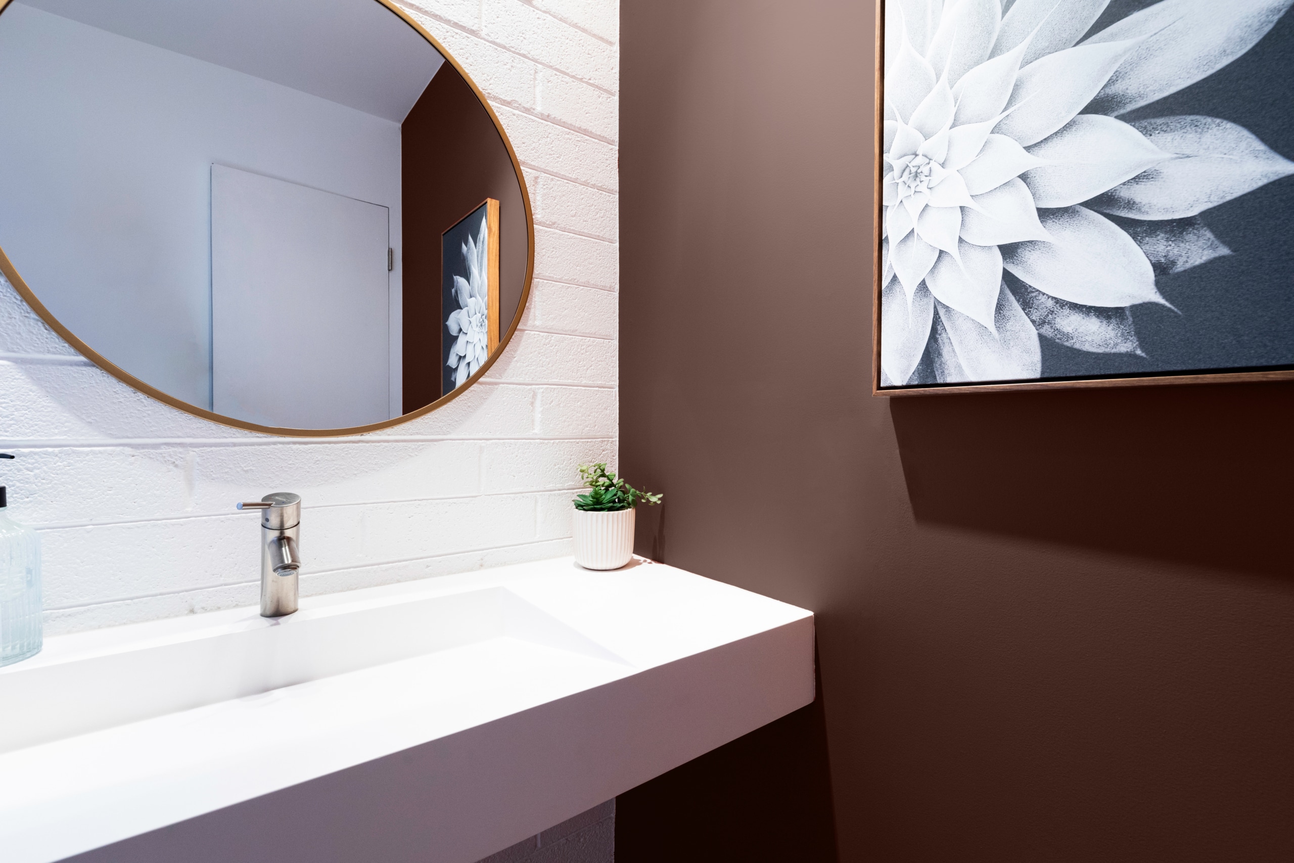 A deep warm charcoal with smoky undertones, Charcoal Sketch creates strong contrast while remaining inviting and pairs beautifully with brass, walnut, and a crisp bright white.