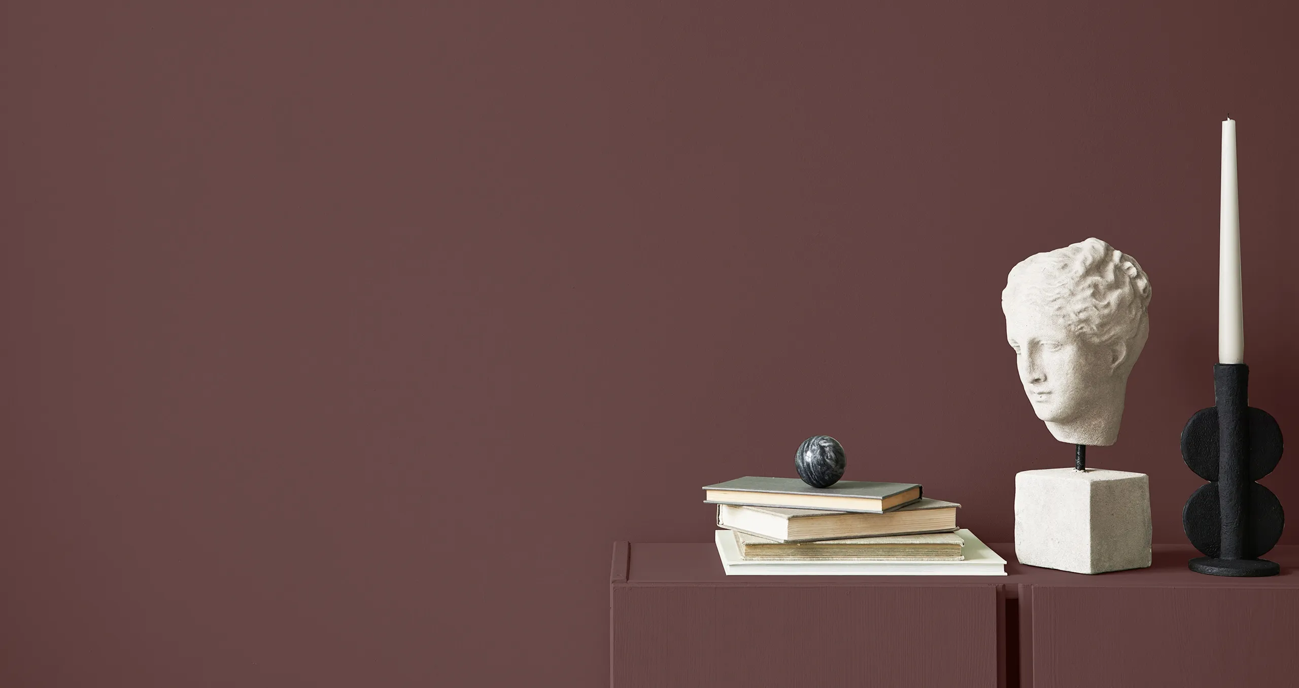 Outer Boundary color is a dark, rich brown with a subtle hint of plum. The warmth and depth of this color will make a space feel cozy and grounded, while still bringing a luxurious feeling to any design. Pair with dusty pink and olive green for a fun, vintage vibe.